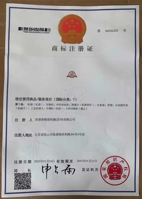 鋸切設備-液壓推進版操作系統-雙德譽榮譽資質
