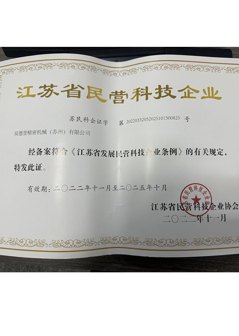 江蘇省民營科技企業-雙德譽